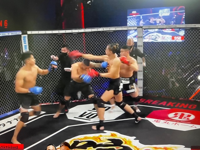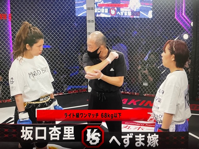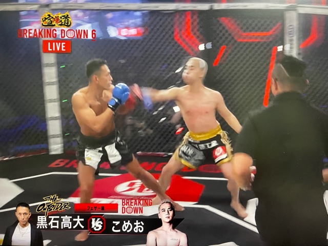 アウトサイダーという競技はMMA(総合格闘技ルール)なのですが、全員がブレイキングダウンに合わせてキックボクシングルールで戦っていました。これは相当に不利だったはずで、あえて相手のルールを受け入れたアウトサイダー勢には漢気を感じます。そもそも、基本的にキックボクシングルールのブレイキングダウンが「1分間喧嘩最強」を謳うのは違和感をおぼえます。この日は1試合だけMMA(総合格闘技ルール)がありましたが、実際の喧嘩は立ち技の打撃だけなどということは有り得ない話で、必ず揉み合って投げが使われ、最後は絞めや関節技で終わることが多いでしょう。だから、「喧嘩」を売り物にするならMMAルールの時間無制限で行くべきです。