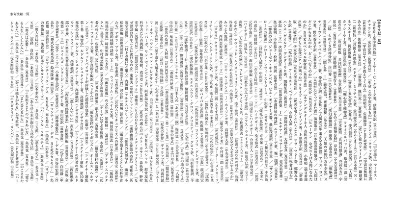 というのも単行本のときはページ数の関係もあって、膨大な量の参考文献を詰めて掲載し、非常に見づらかったのです。読者は「参考文献一覧」によって、新しい本との出合いを果たすことがあります。わたしは「これでは読者も読みにくいし、参考文献の著者の方々にも礼を失する」と申し訳なく思っていました。『儀式論』の担当編集者である弘文堂の外山千尋氏からも「『唯葬論』は良い御本ですが、あの参考文献一覧は残念ですね」と言われていました。今回の文庫版では参考文献は1行に1冊ずつ掲載し、非常に読みやすくなりました。