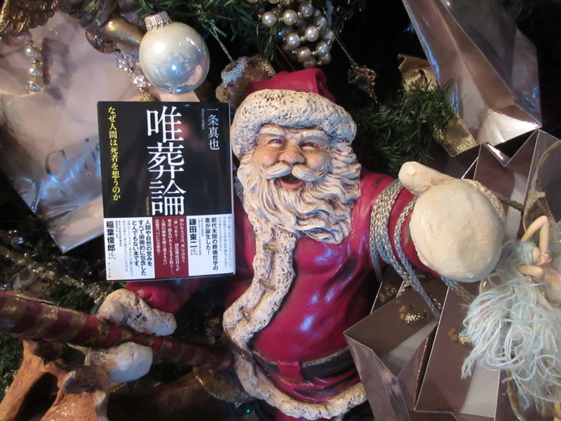 『唯葬論』文庫版は、2017年12月25日、なんとキリストの生誕日とされる「クリスマス」の日に発売されました。本を持ったサンタクロースの写真は、自宅のクリスマス飾りの前で撮影したものです。クリスマスやサンタクロースの正体については、本書の「供養論」で詳しく述べています。聖なる日に転生を果たした本書が、1人でも多くの方々に読まれることを心より願っています。