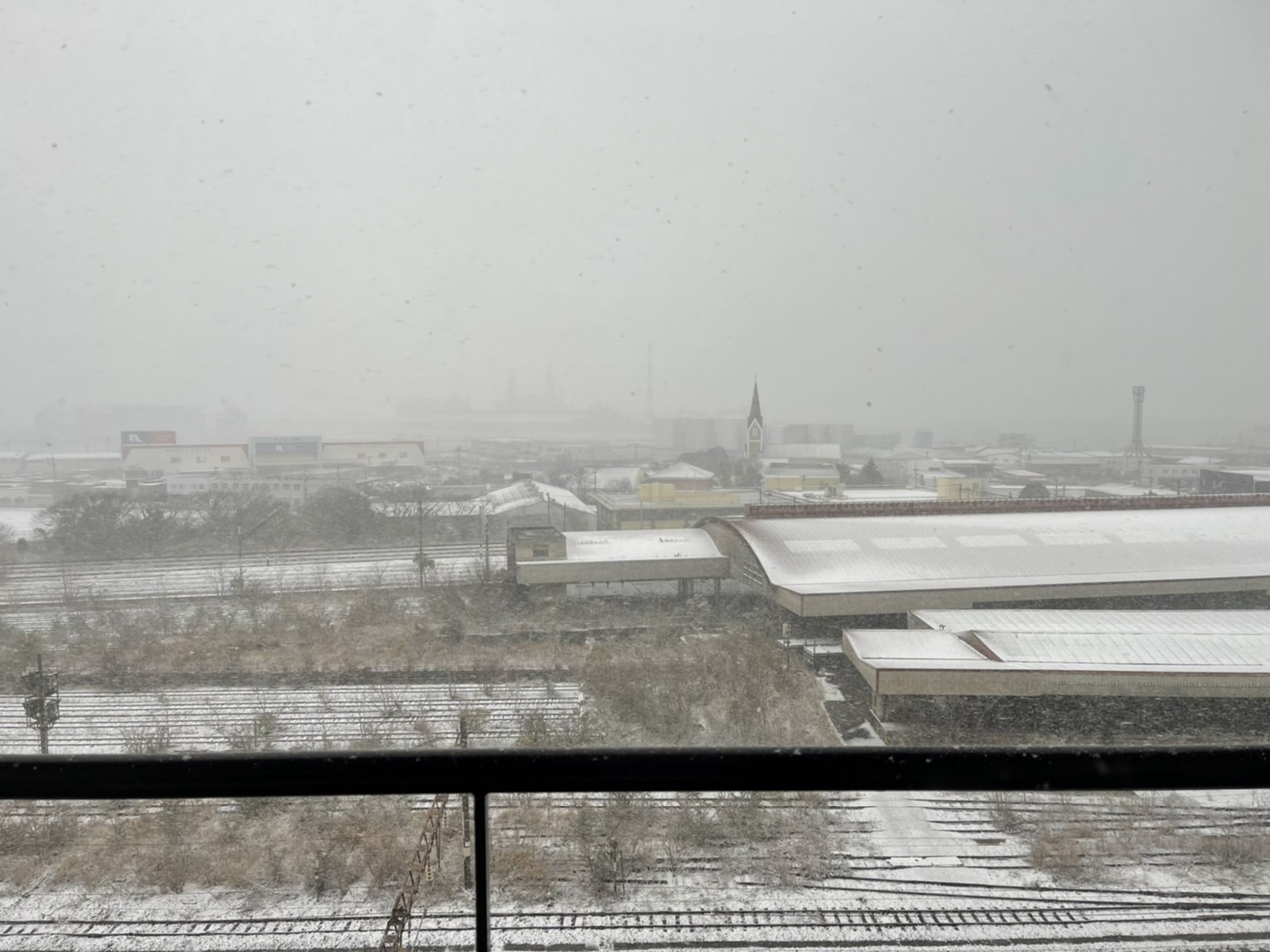 サンレー本社の駐車場に雪が降る