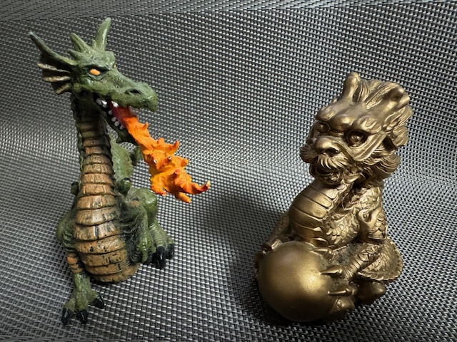 なんと、そこには二体の龍のフィギュアが置かれていて、しかも一体は火を吐いていたのです。よく見ると、火を吐いている方は東洋の龍ではなく、西洋のドラゴンでした。そう、火を吐くのは龍ではなく、ドラゴンなのです。似ていても異なる存在ですが、ともに動物ではありません。あくまでも想像上の幻獣、あるいは霊獣とされています。