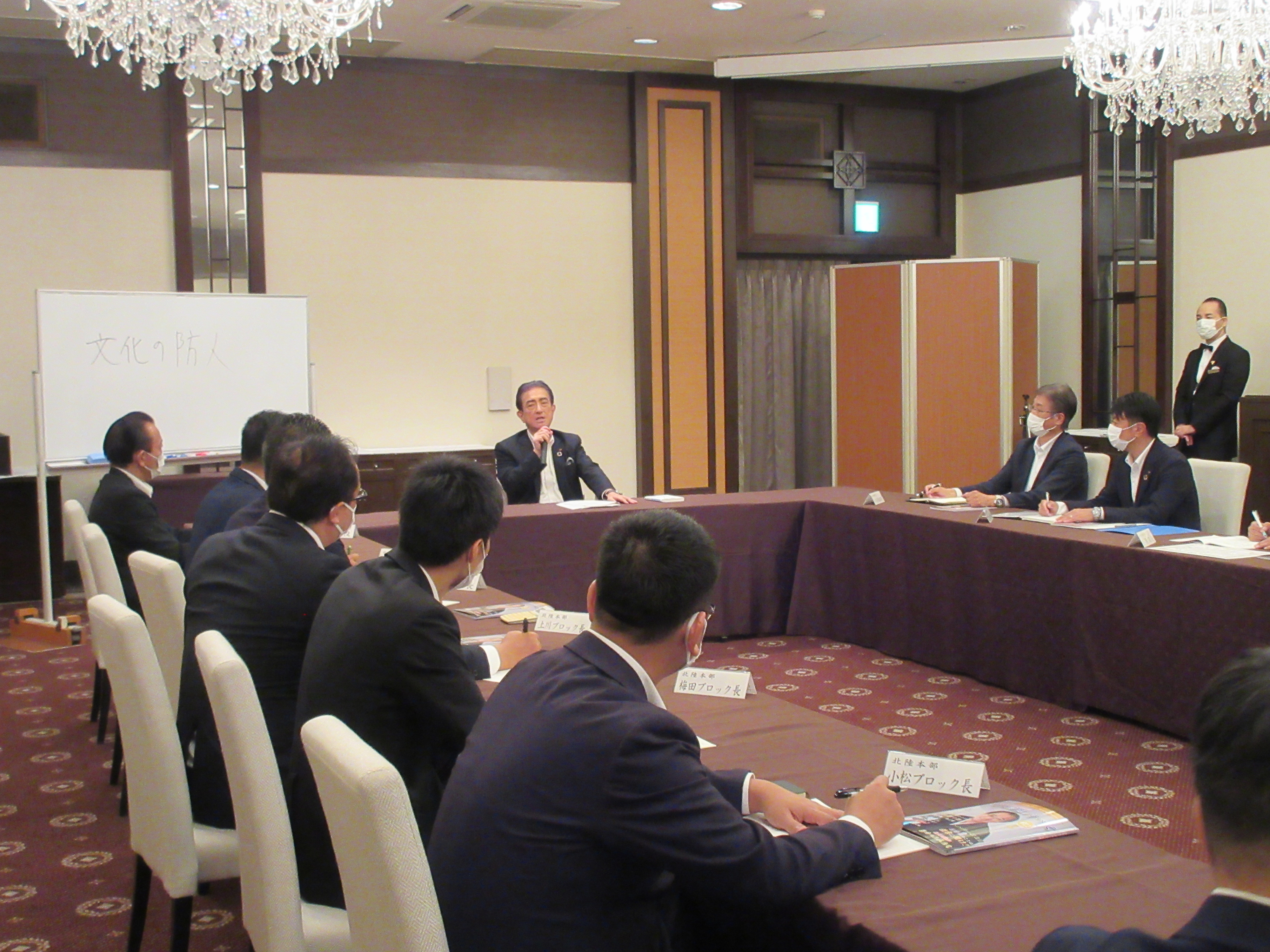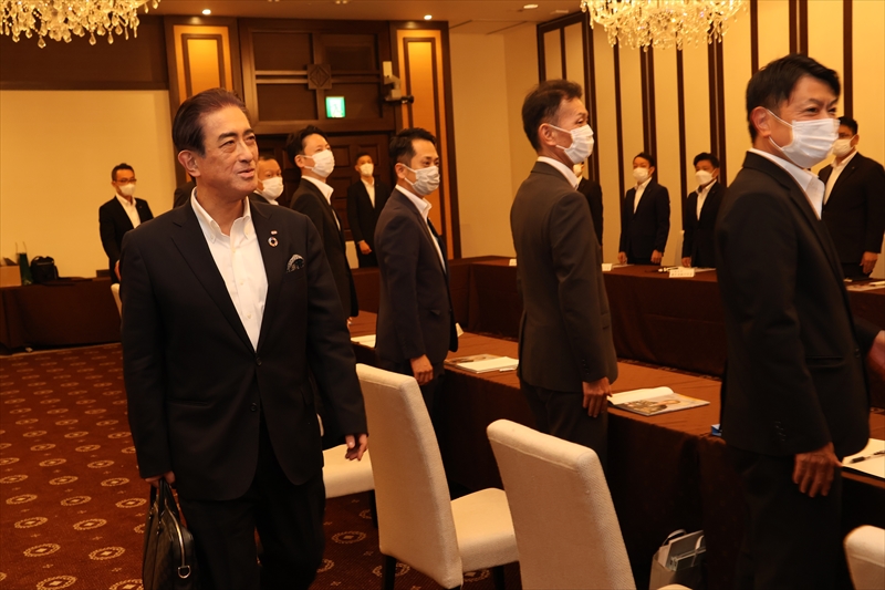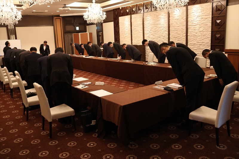 9月5日、サンレーグループの営業責任者会議を開催。各地から営業の責任者たちが集いました。会場は前回に続いて松柏園ホテルの「グランフローラ」です。16時30分から開始、1時間にわたって社長訓話を行いました。