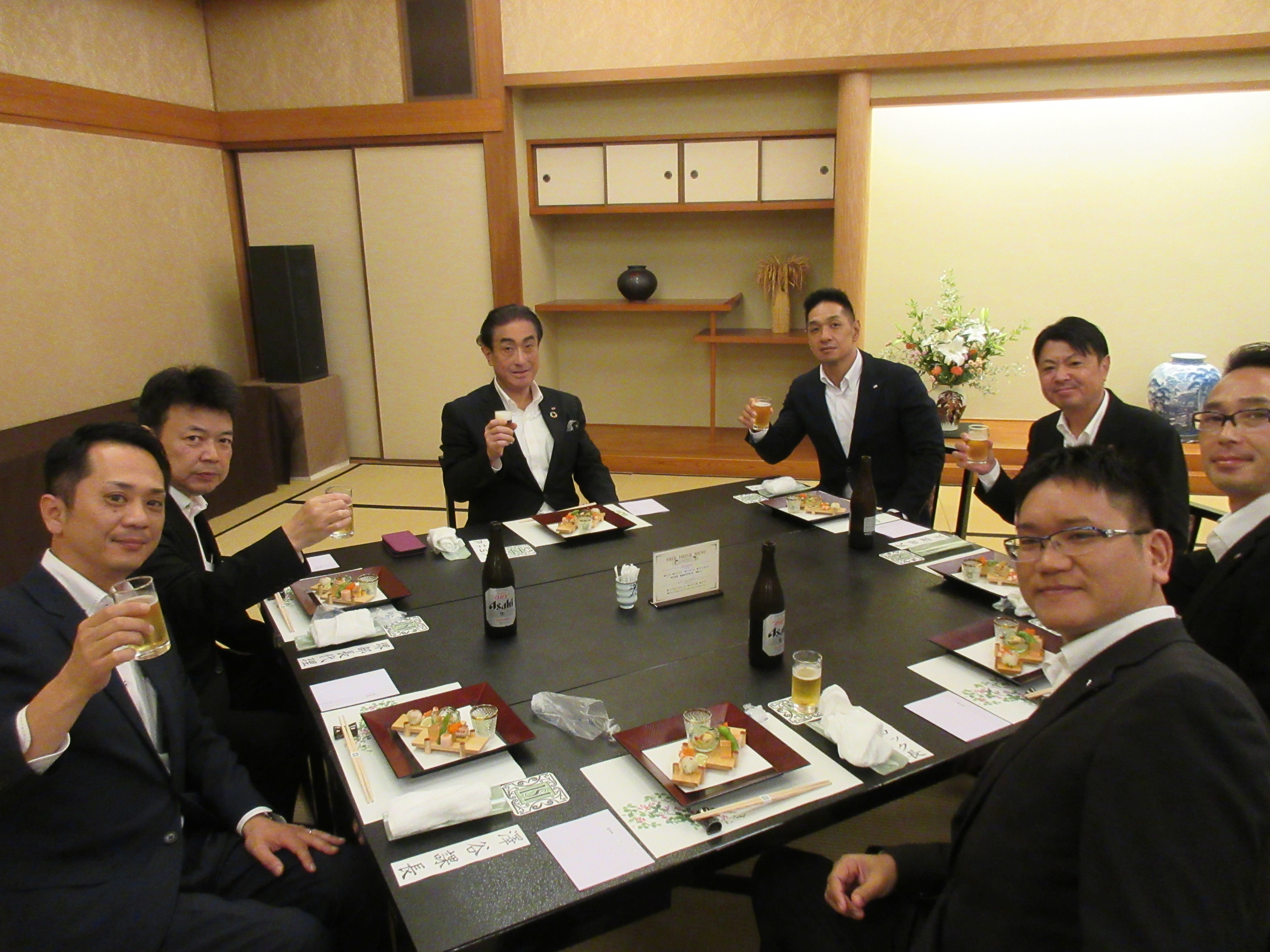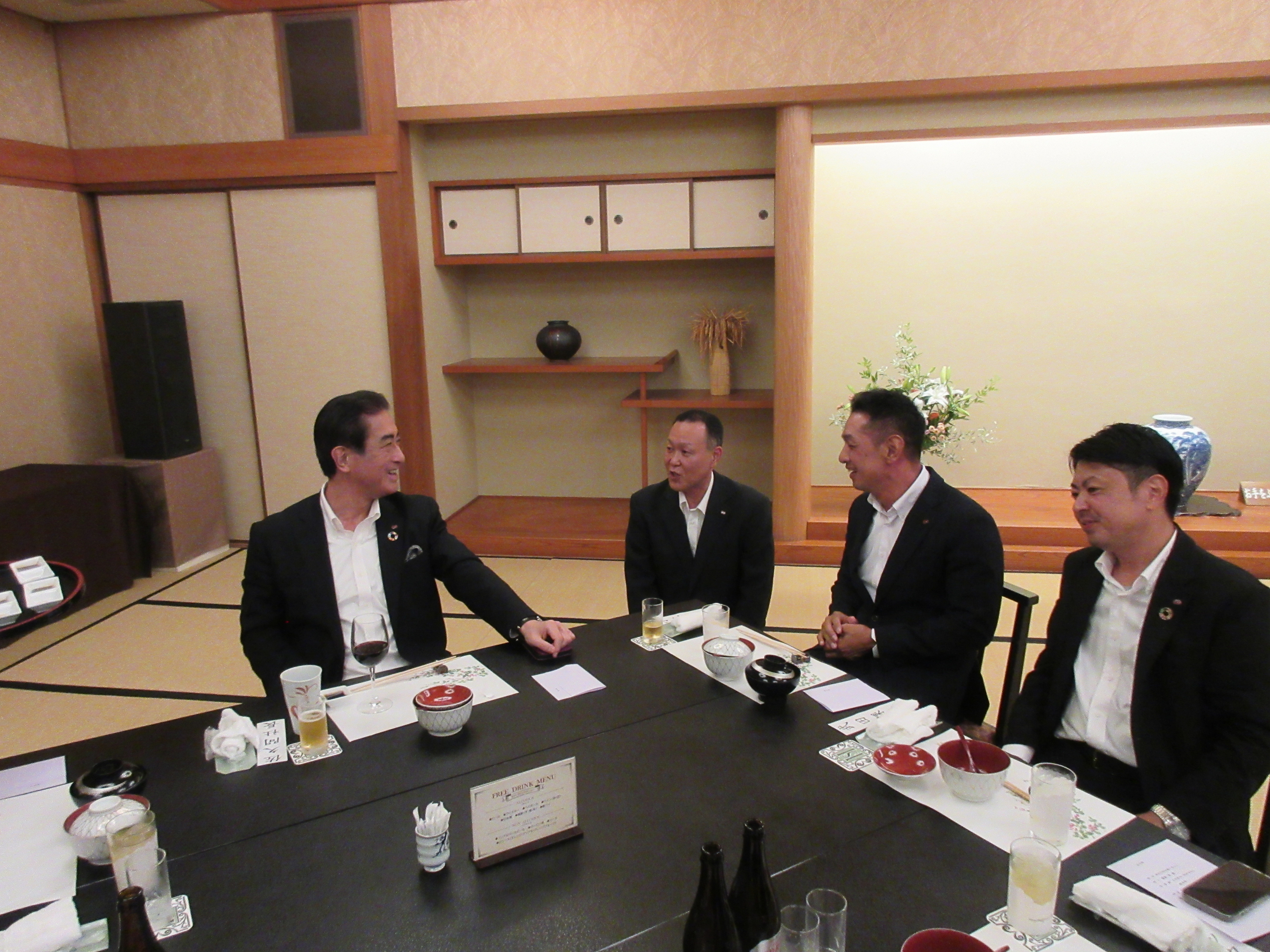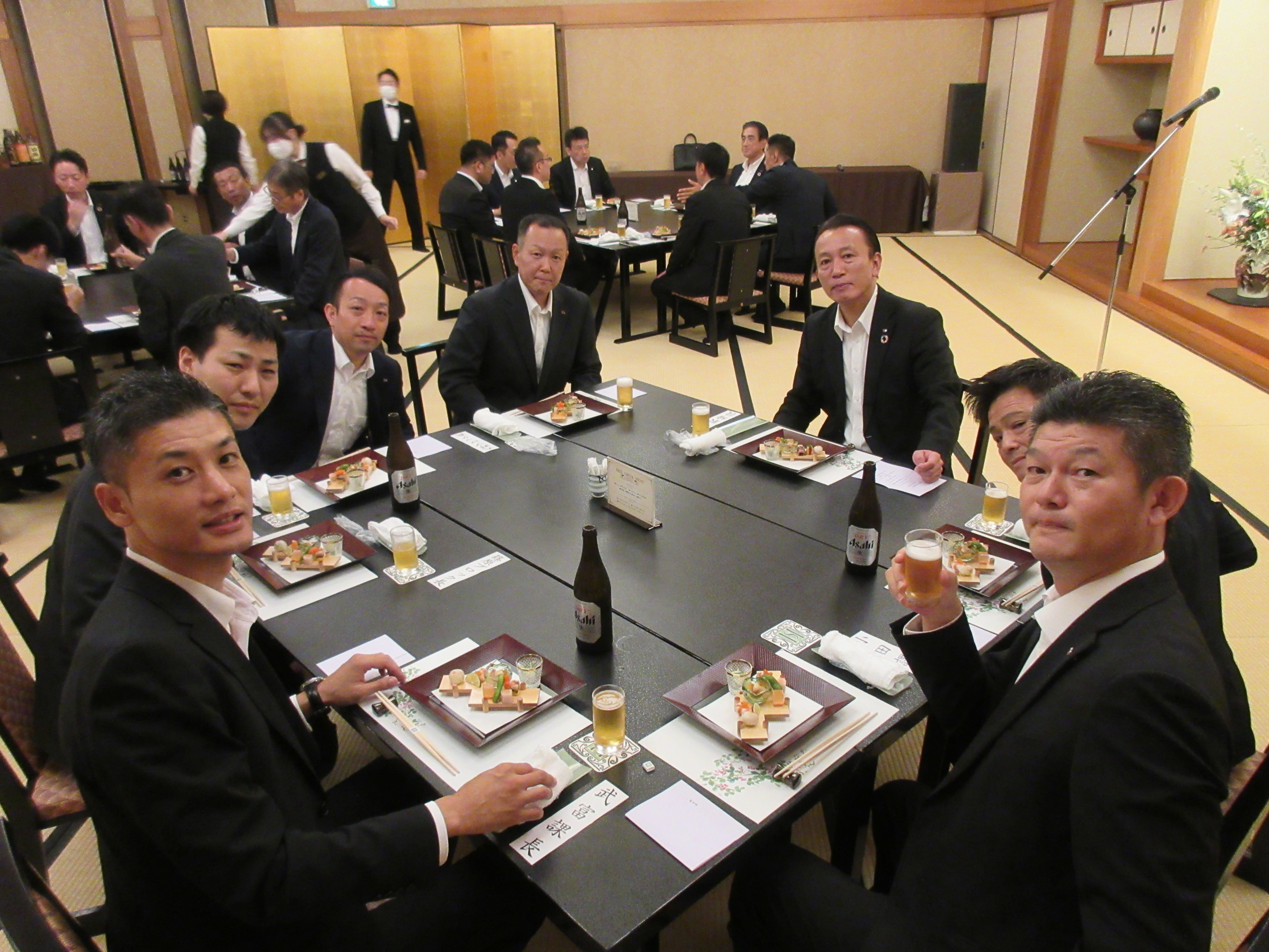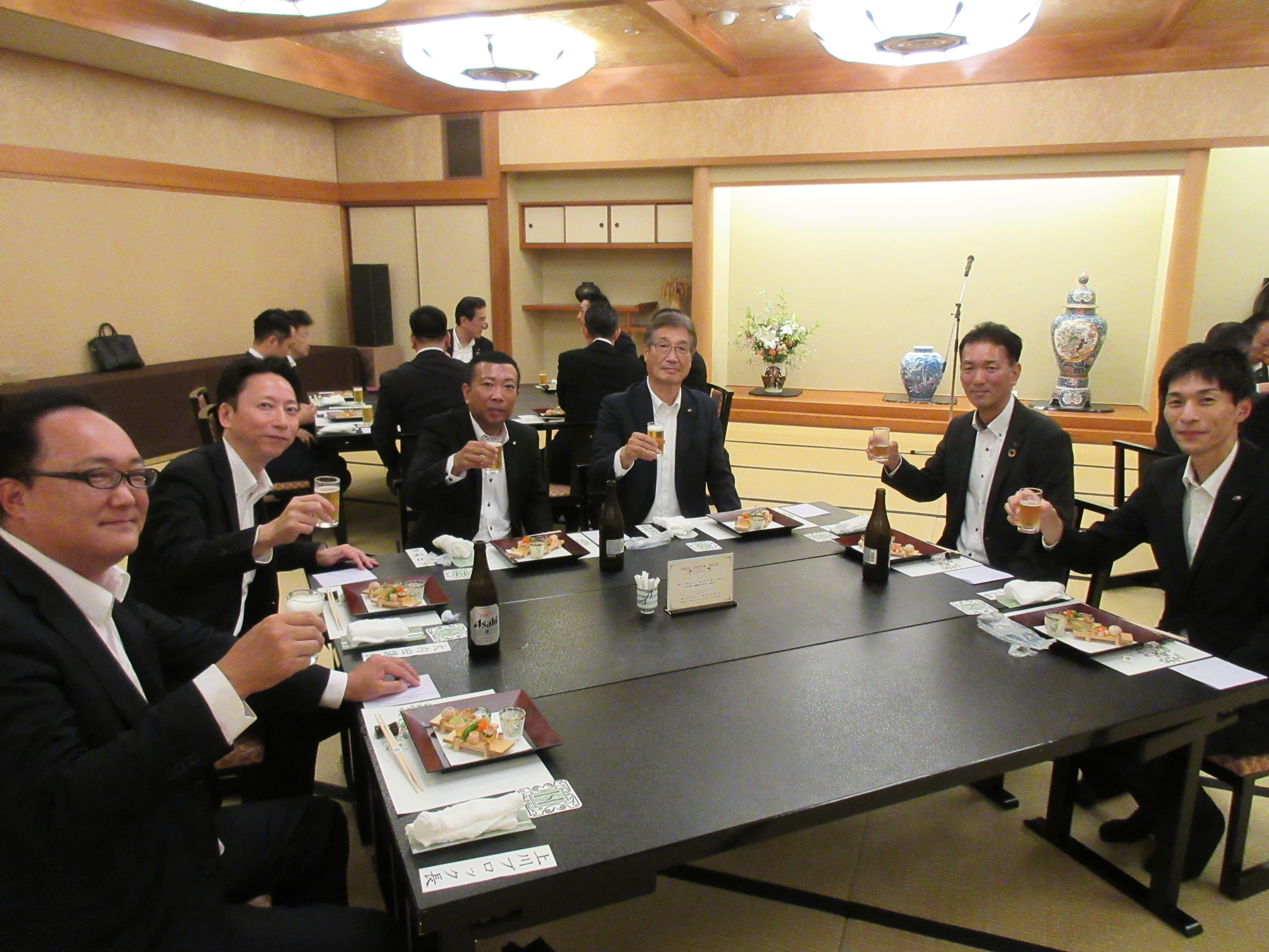 その後、各地から参集したみなさんは、お酒や料理を楽しみながら会話の花を咲かせました。久しぶりに再会した営業責任者も多く、松柏園の美味しい料理に舌鼓を打ちながら互いに近況報告をしたり、それぞれの仕事の悩みを相談したり・・・・・・まさに「食事」は「人に良い事」であると再認識しました。「ここにいる彼らが、冠婚葬祭という『文化の核』を守ってくれる『文化の防人』なのだ」と思うと、胸が熱くなりました。
