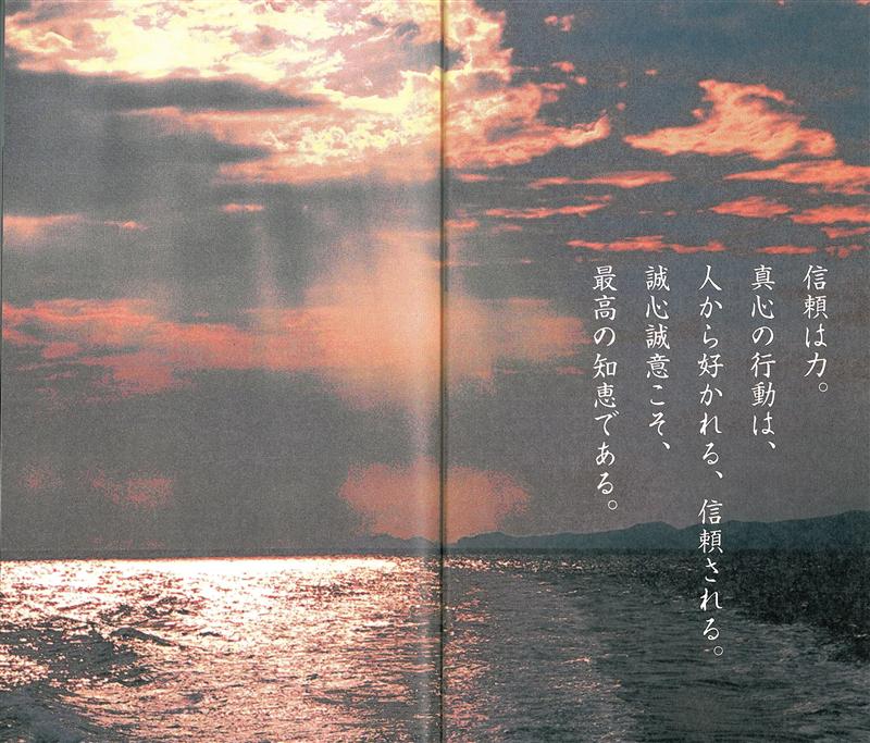 また、『わが人生の「八美道」』では、「礼法八美道」の紹介に続けて、夜明けの海に射し込む朝陽の写真(沖縄在住の写真家である安田淳夫氏が撮影)とともに、父の以下の言葉が記されています。