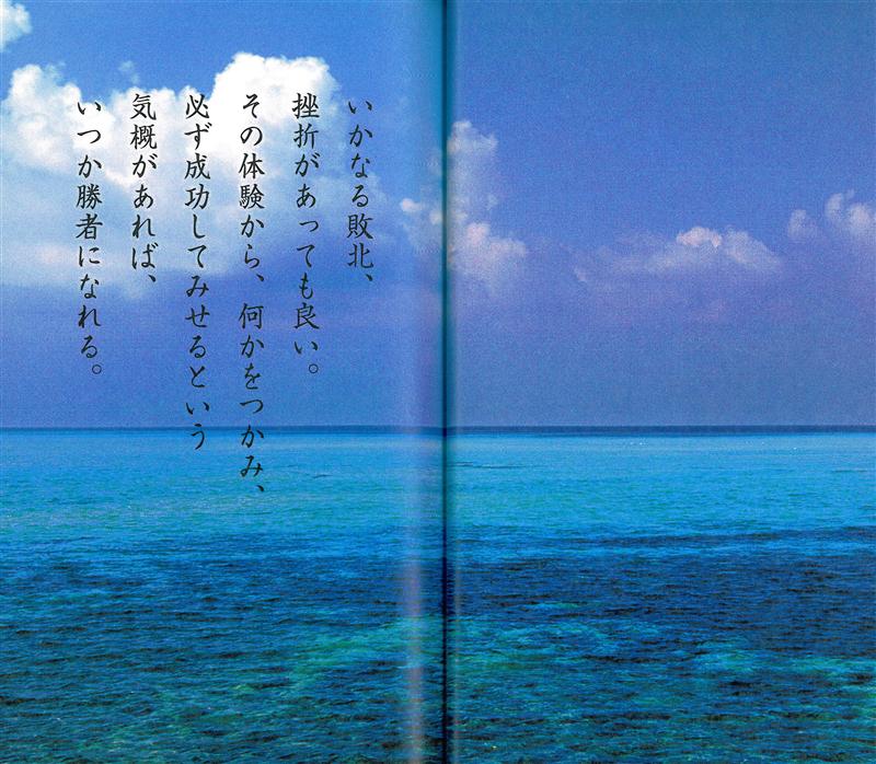 また、『わが人生の「八美道」』には「姿勢八美道」を紹介した後、沖縄在住の安田淳夫氏が撮影した石垣島の青い空と青い海の写真とともに、父が遺した以下の言葉が記されています。この言葉は、いま怯えているであろう匿名ブロガーにも教えてあげたいですね。まあ、父はわたしに「弱い者いじめはするなよ」と言うかもしれませんが。