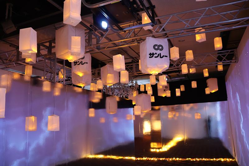 そして⑤イルミネーション・エリアでは、ランタン・ロードで「死者と生者が交差する場所」をイメージしました。幻想的なしつらいで供養に没頭する時間を演出しました。故人が遺した「名言」の数々に触れていただき、動画「すすめ!進くん」もご覧いただくことができます。