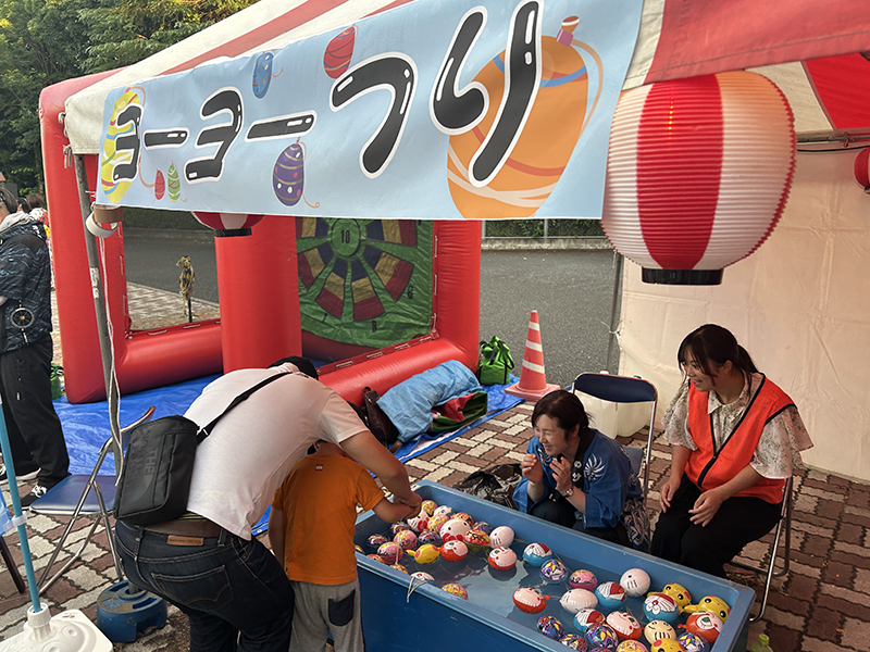 この日は、射的、ヨーヨーつり、エアダーツなども出店して「縁日」気分を盛り上げていました。また、屋台(外部キッチンカー)として、ハンバーガー、やきとり、やきそば、ドリンク。屋台(社内テント)では、たこ焼き、フライドポテト、ポップコーン、かき氷なども出店しました。