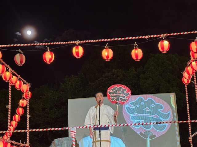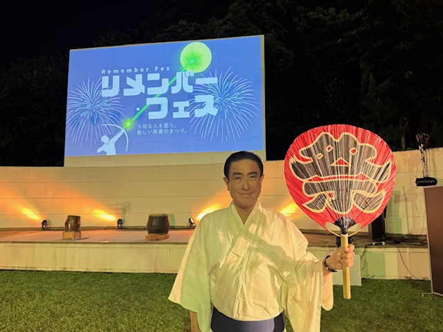 この日、わたしは浴衣を着て盆踊りの櫓の上にあがって、主催者挨拶をしました。わたしは、「みなさま、『リメンバー・フェス』にご参加くださり、ありがとうございます。ただいまの盆踊り、素晴らしかったですね。浴衣姿で踊るお子さん、手拍子を送ってくださったご年配の方々、そして踊りながら空を見上げる、皆さまの表情がとても美しくて・・・・・・胸がいっぱいになりました。この『盆踊り』という文化は、もともとお盆の時期にご先祖さまをお迎えし、一緒に踊るという行事でした。今夜のこの踊りは、まさに“亡き人と生きている人が心を通わせる時間”だったと、わたしは思います」と述べました。