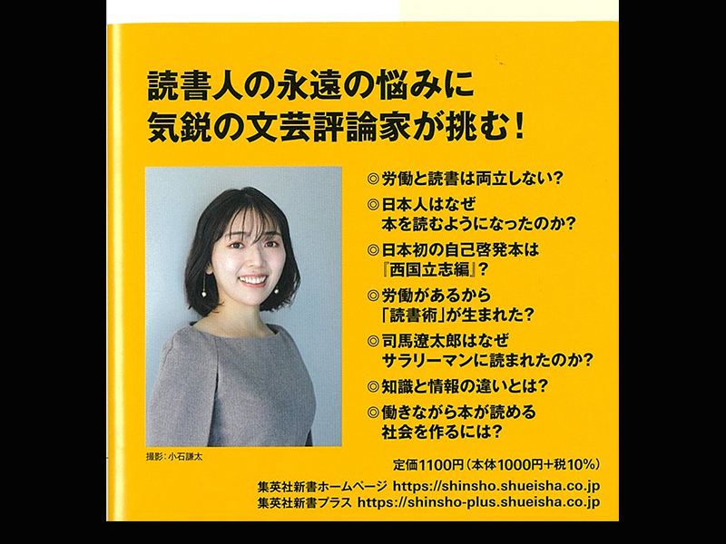 帯の裏には、著者の笑顔の写真とともに、「読書人の永遠の悩みに気鋭の文芸評論家が挑む!」として、「◎労働と読書は両立しない?」「◎日本人はなぜ本を読むようになったのか?」「◎日本初の自己啓発本は『西国立志編』?」「◎労働があるから『読書術』が生まれた?」「◎司馬遼太郎はなぜサラリーマンに読まれたのか?」「◎知識と情報の違いとは?」「働きながら本が読める社会を作るには?」と書かれています。