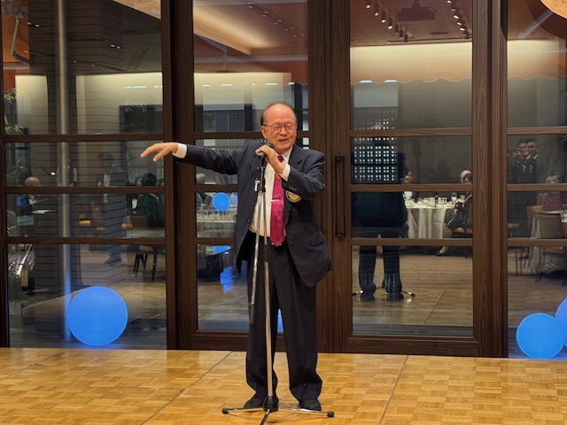 21時には中締めで、最年長の天ヶ瀬会員の音頭で「小倉締め」が行われました。この日は観月会なのに雨が降って、月は見えませんでした。それでも、みなさんに料理とお酒と音楽を楽しんでいただき、素晴らしい観月会となりました。ご参加下さったみなさまと、親睦・活動委員会のメンバーに感謝! 今夜は、書斎でエディット・ピアフの「愛の讃歌」を聴きながら余韻に浸りたい思います。