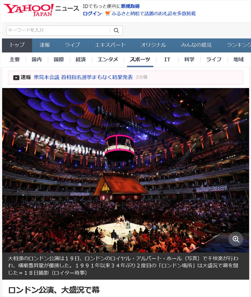 大相撲ロンドン公演が19日、ロンドン中心部のロイヤル・アルバート・ホールで千秋楽が行われ、横綱豊昇龍が優勝しました。ともに4勝無敗で迎えた結びの一番で横綱大の里を送り出しました。約5400人収容の会場には5日間ずっと「満員御礼」が掲げられ、1991年以来34年ぶり2度目の「ロンドン場所」は大盛況で幕を閉じました。
