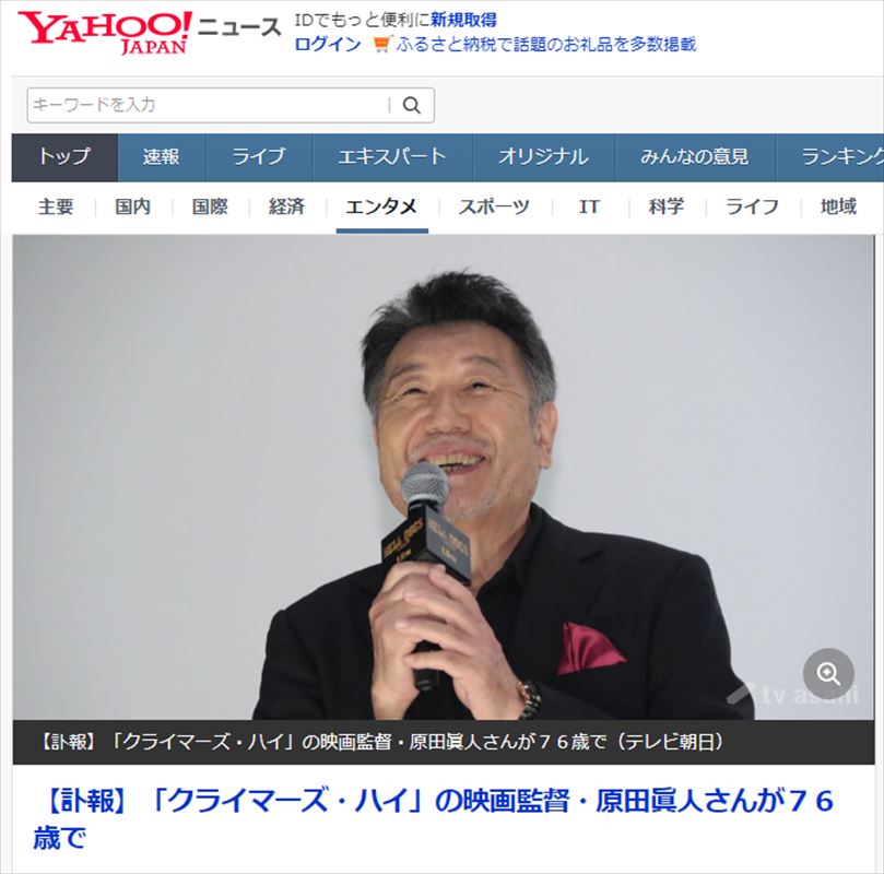 今度、原田監督と再会したら、「ジャニーズ事務所と映画」についても意見交換させていただきたかったのに残念です。15日の通夜式、16日の葬儀告別式はどうしても仕事の都合で参加できません。会場には、お花を出させていただきます。原田監督は生前、「映画は愛よ!」と口癖のように言われていました。わたしは、名作「さらば愛しき人よ」にならって、「さらば愛しき映画監督よ」と原田監督に言いたいです。たくさんの名作を、たくさんの感動を、本当にありがとうございました! 最後に、日本映画界が誇る名匠・原田眞人監督のご冥福を心よりお祈りいたします。合掌。